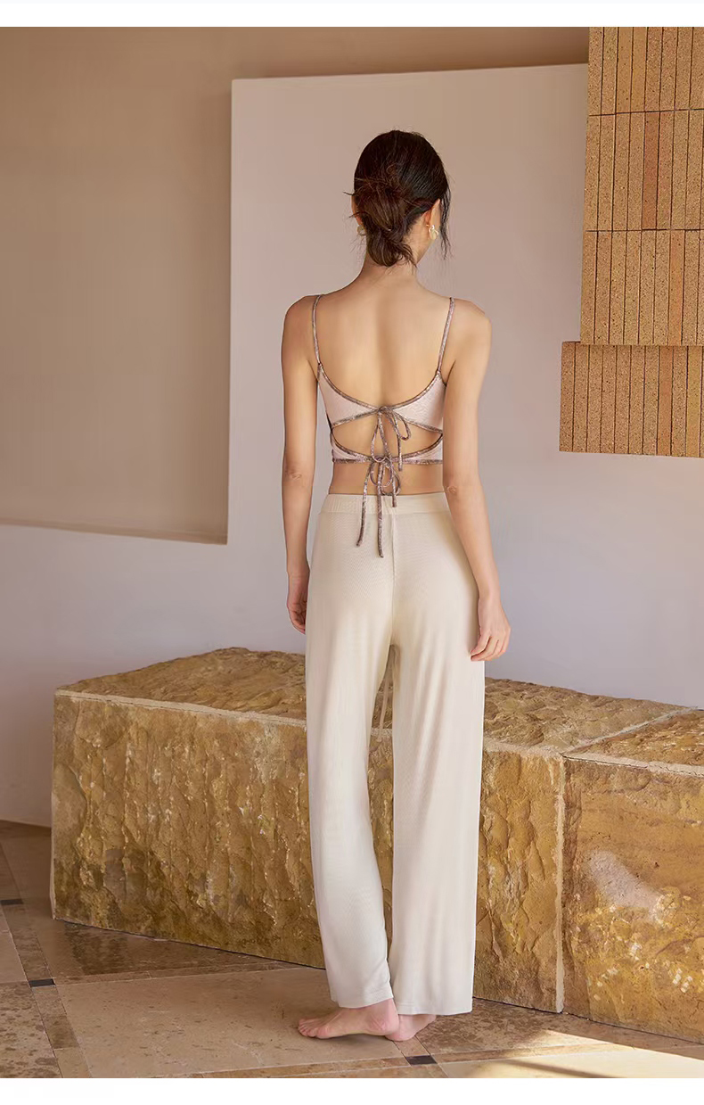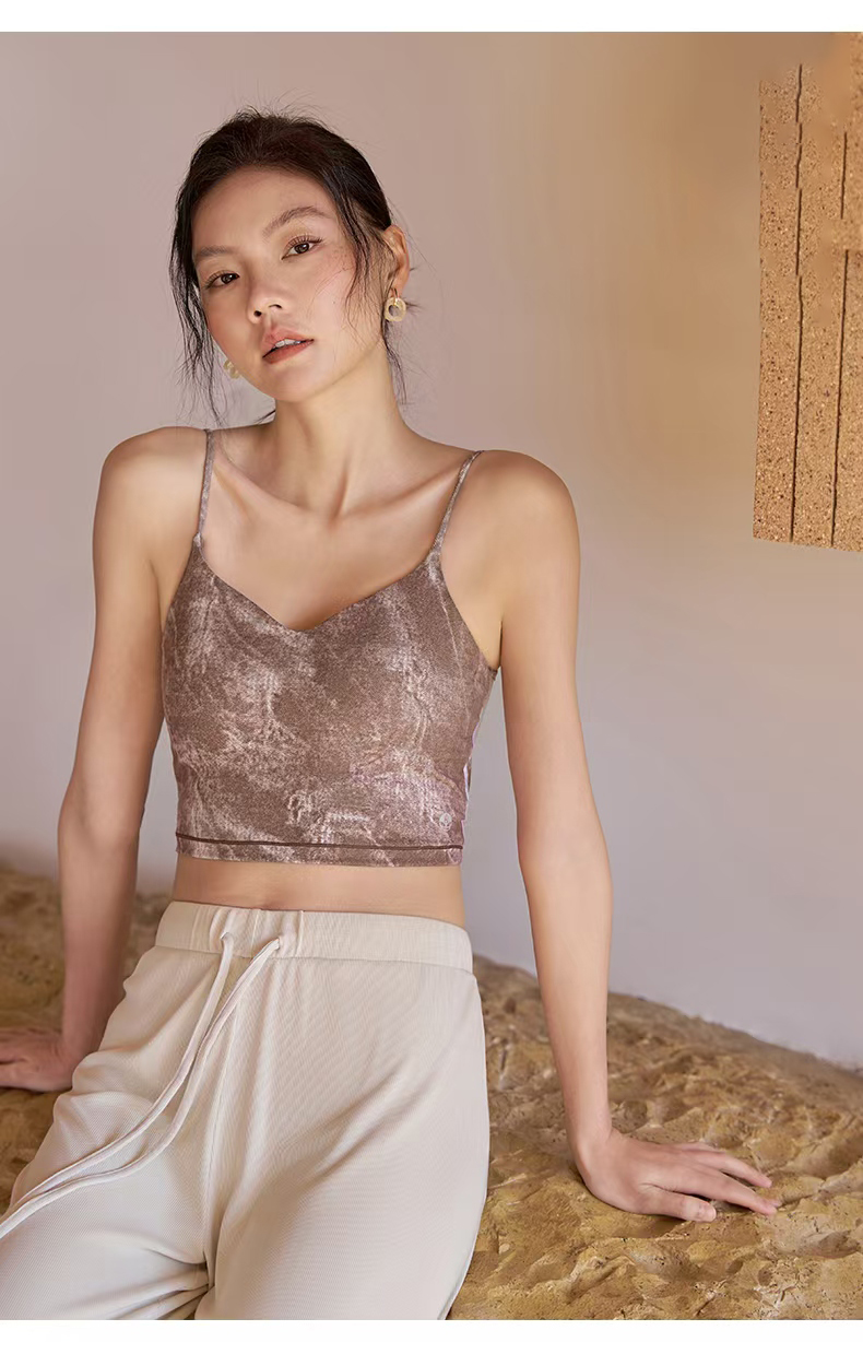 > QUEEN YOGA後背縷空綁帶短款瑜伽運動背心(內含胸墊)