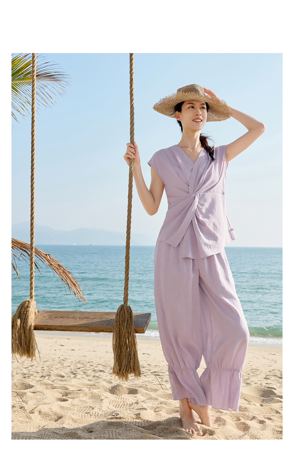 天絲漢麻,胸口立體扭結,隨身的靈動雕塑