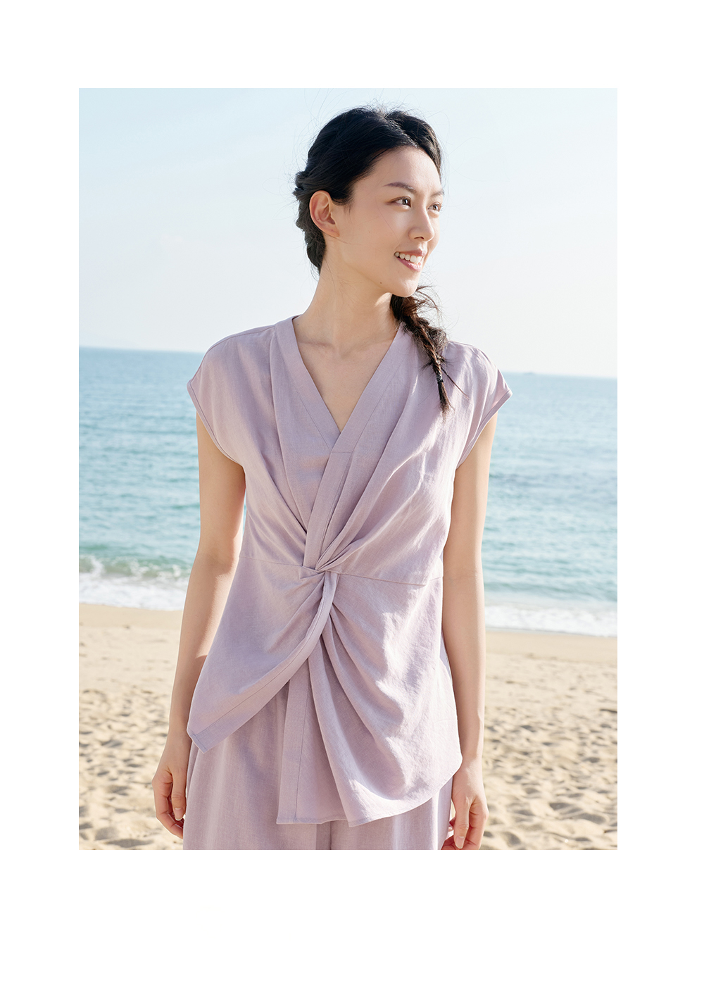 ✅修飾臉型的V領設計,寬鬆落肩版型更包容